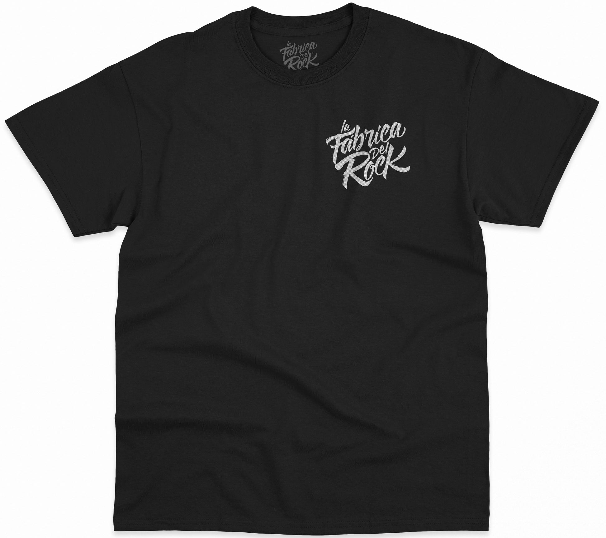Polera Negra 100% algodón orgánico, con cuello reforzado. Diseño con nuestro logo de La Fabrica del Rock.