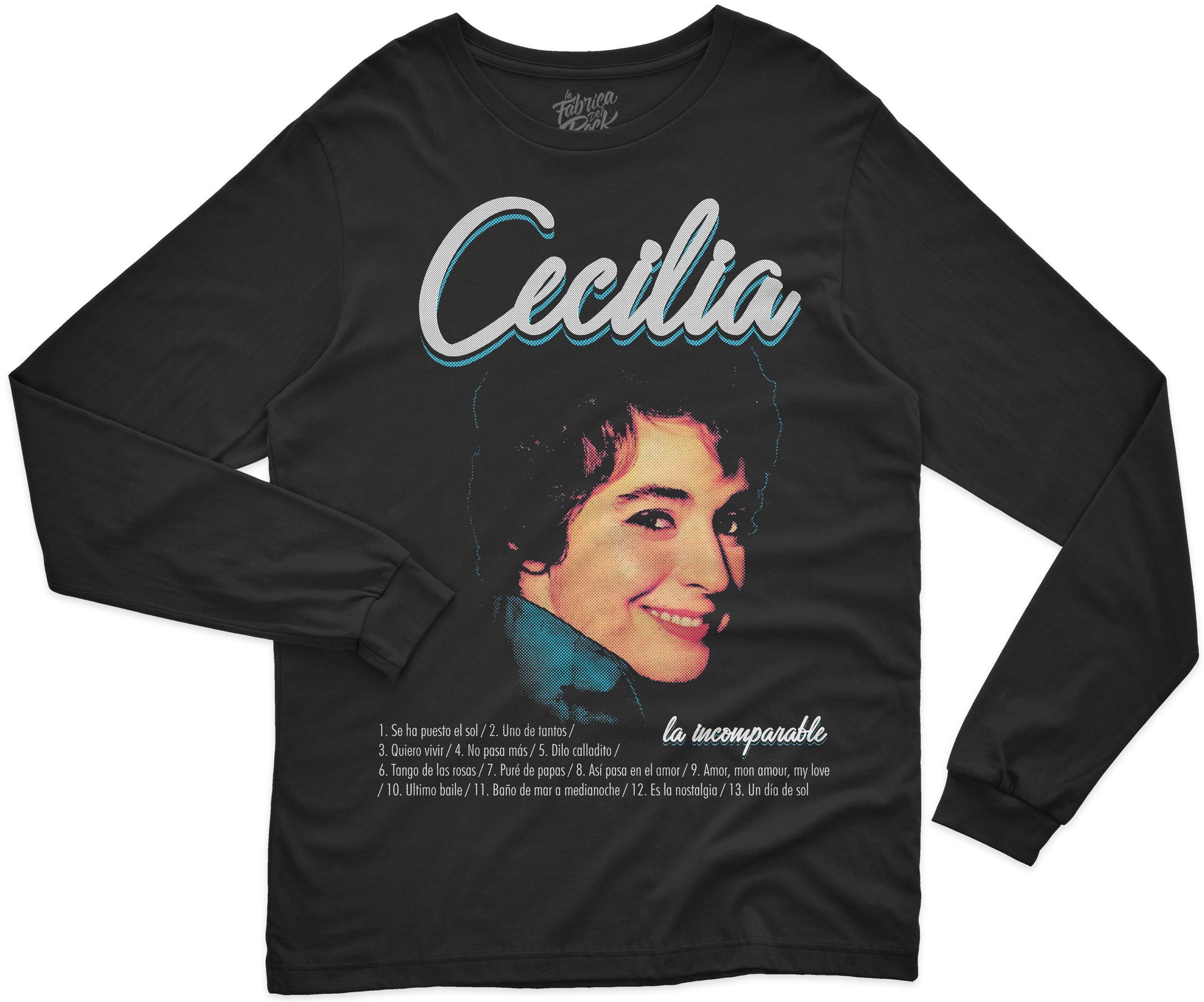 Polera negra 100% algodón , con cuello reforzado . Inspirada en la única Cecilia, La incomparable.