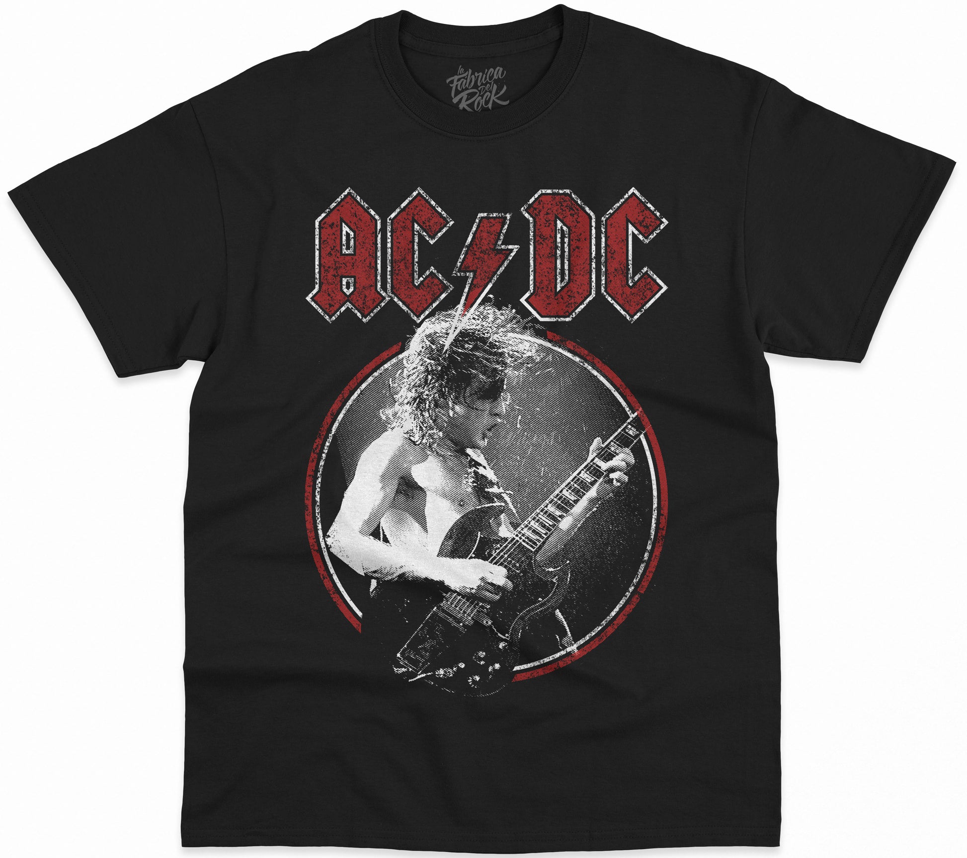 Polera negra 100% de algodón, con cuello reforzado. Diseño inspirado en el guitarrista de AC DC.