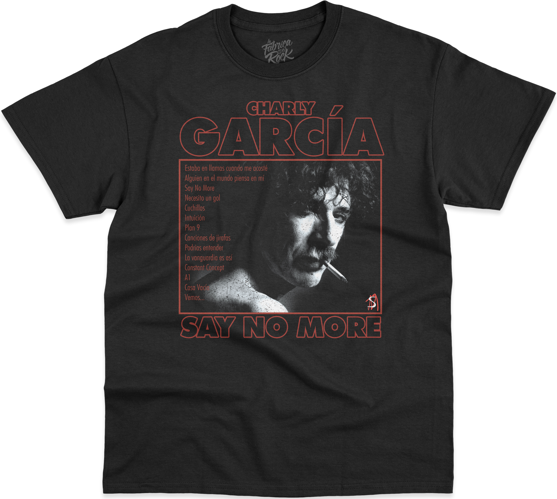 Polera negra de algodón 100% , con cuello reforzado. Inspirada en Charly García y su canción Say no more.