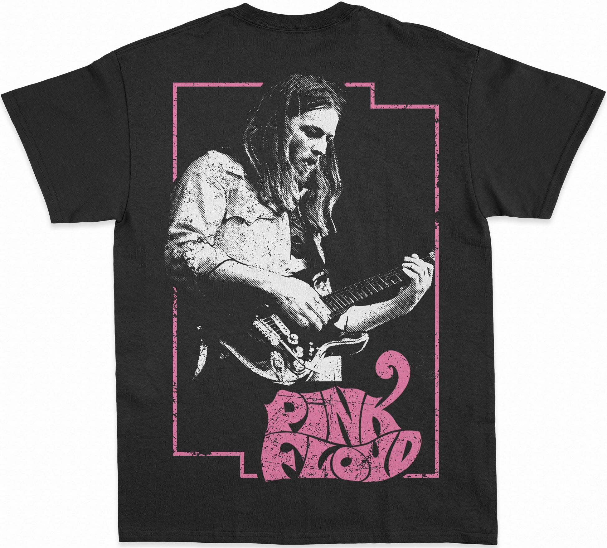 Polera negra 100% de algodón, con cuello reforzado. Diseño inspirado en el tremendo guitarrista de Pink Floyd David Gilmour. M