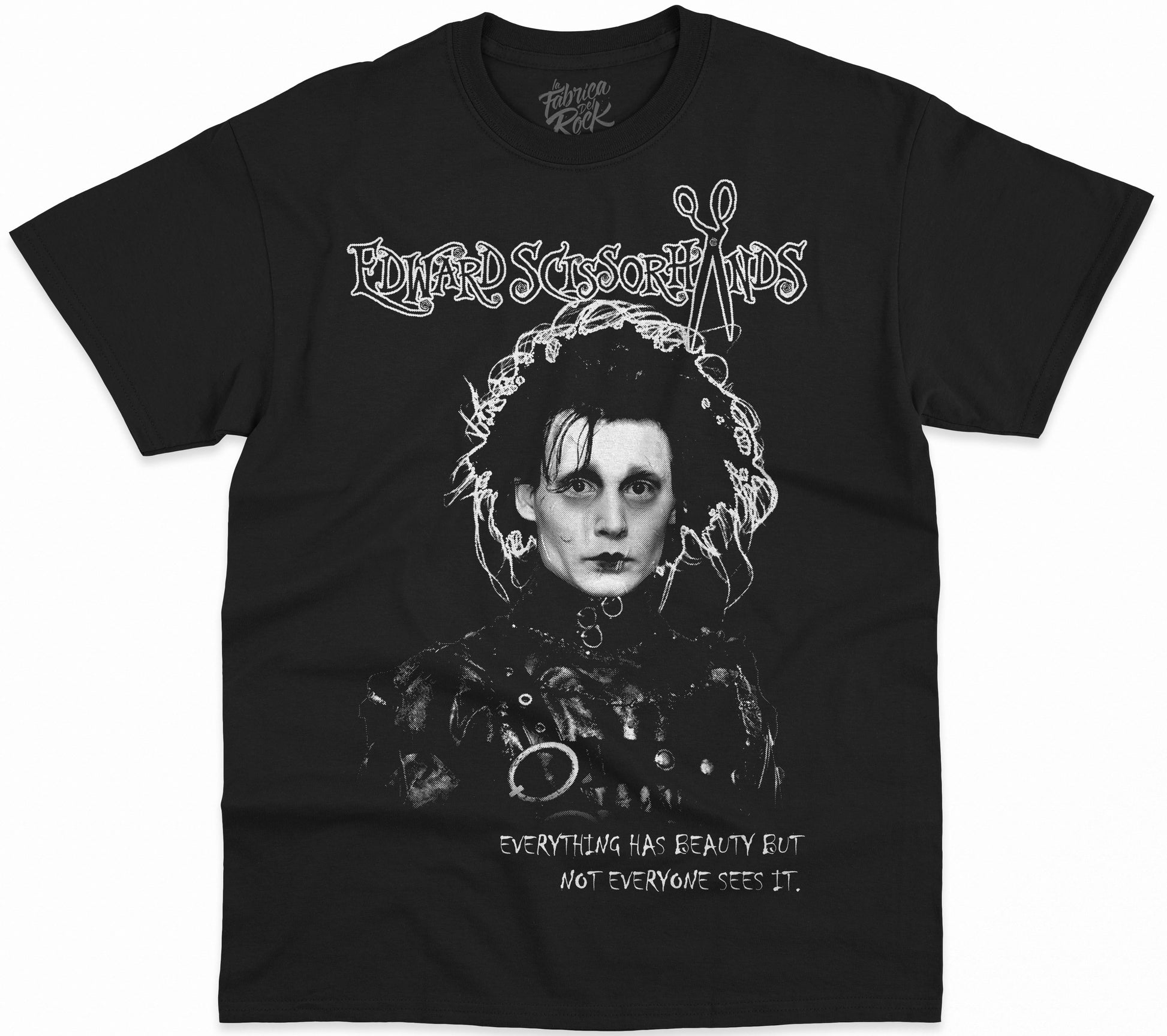 Polera Blanca 100% algodón, con cuello reforzado. Diseño inspirado en el personaje Edward ScissorHands traducida como El Joven manos de tijera.
