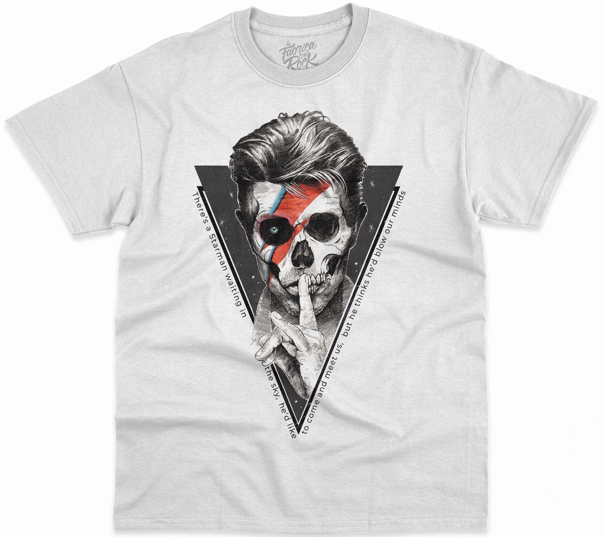 Polera 100% algodón , con cuello reforzado. Diseño inspirando en la canción Starman de David Bowie. calavera