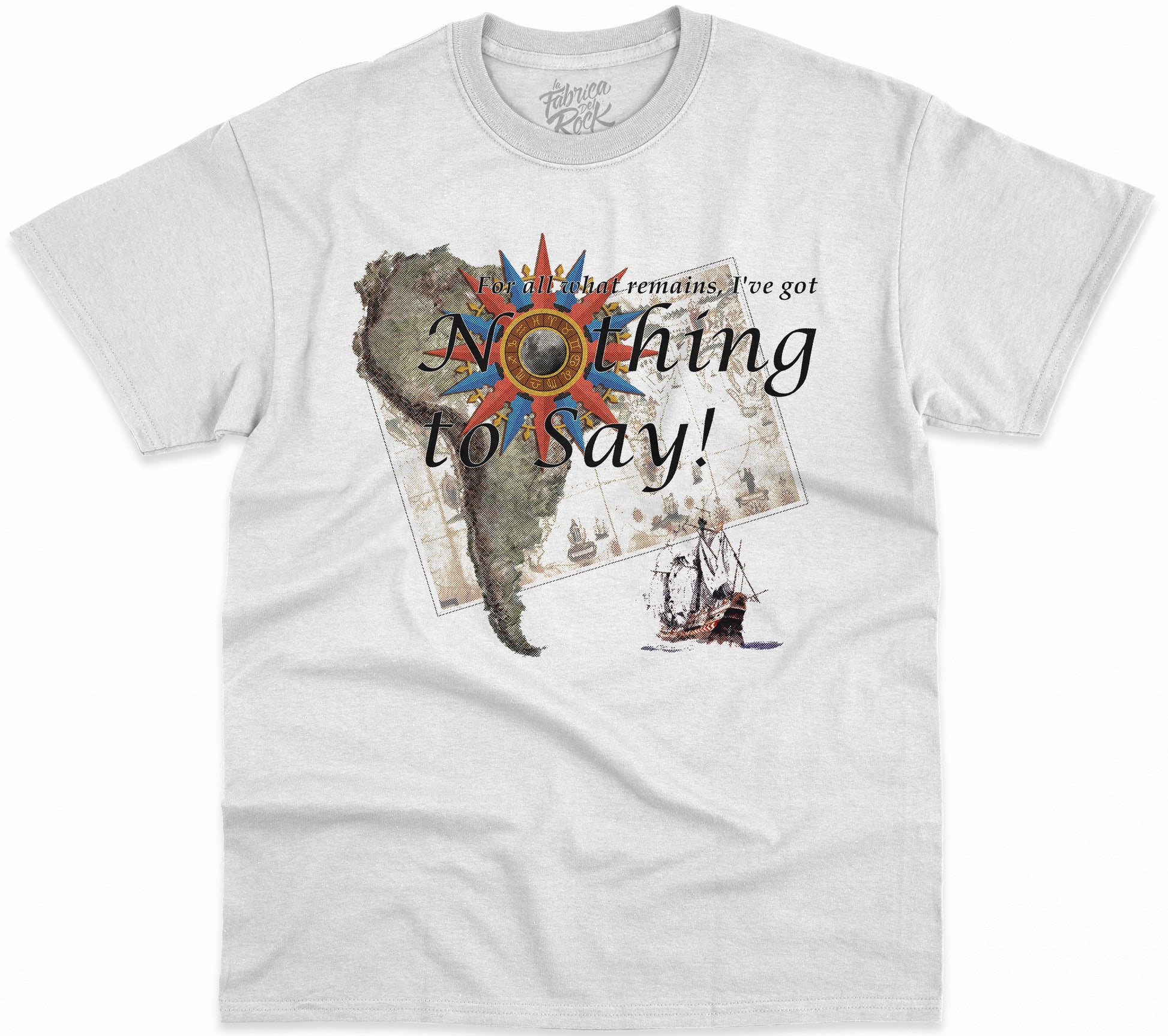 Polera Blanca 100% algodón orgánico, con cuello reforzado. Diseño inspirado en la cancion nothing to Say de la banda brasilera Angra. Metal