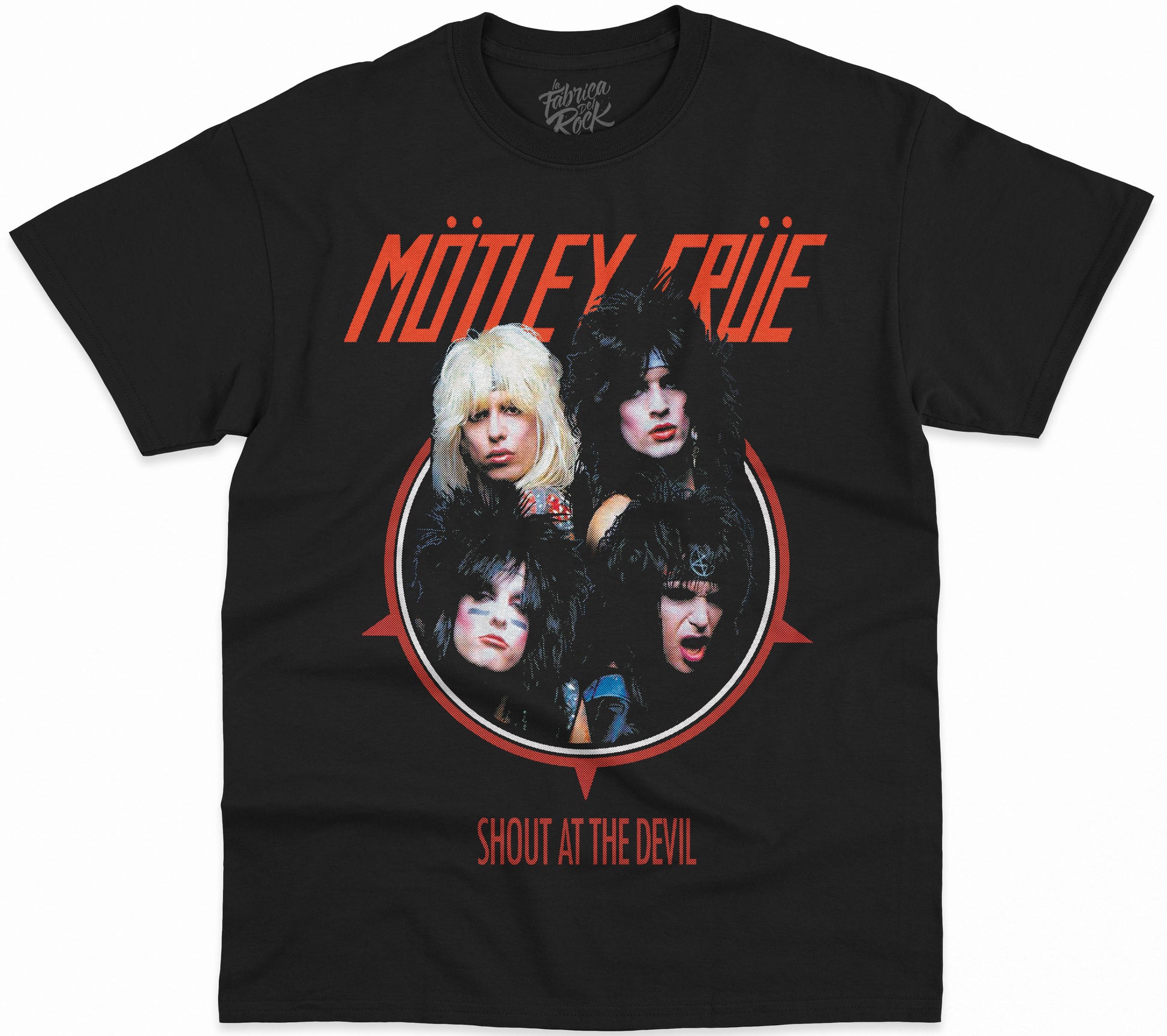 Polera negra de algodón 100% , con cuello reforzado . Diseño inspirado en el grupo de glam metal de Los Ángeles Mötley Crüe .