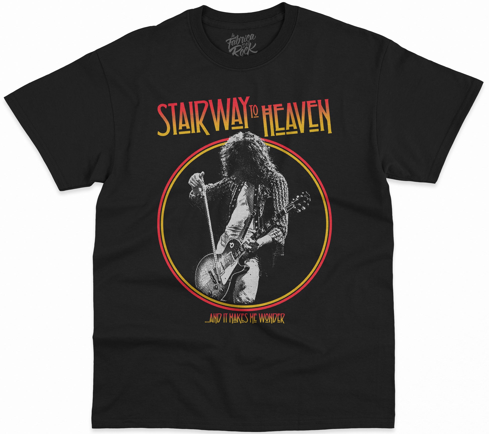 Polera Negra 100% algodón, con cuello reforzado. Diseño inspirado en la legendaria canción Stairway to Heaven de la banda de hard rock Led Zeppelin con su mítico guitarrista líder Jimmy Page.